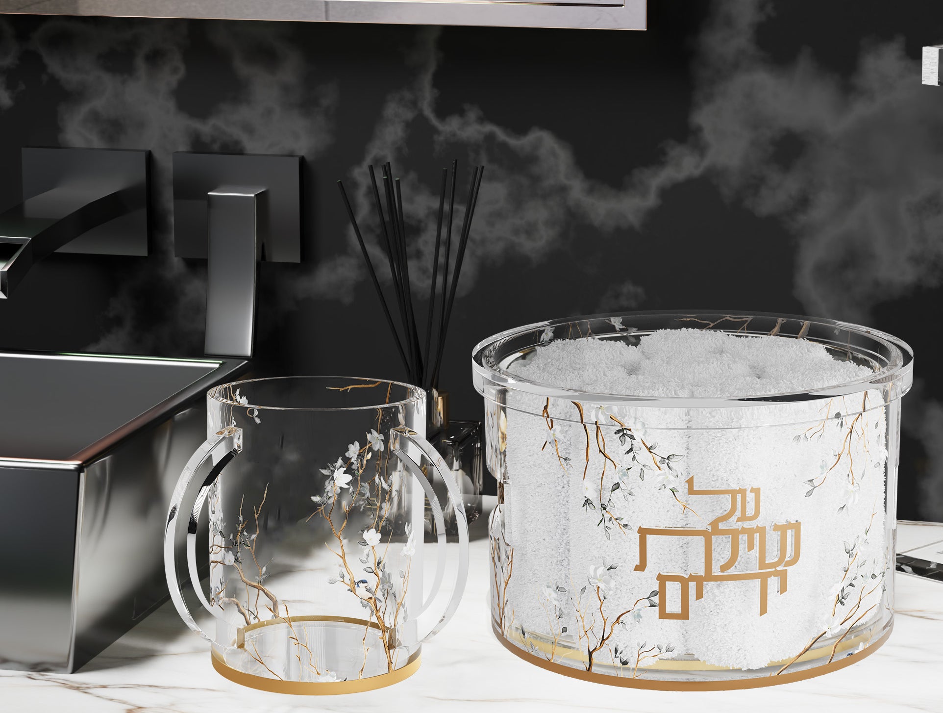 Housewarming-ready Judaica that blends faith and function. Towel boxes, bencher sets, and Netilas Yadayim stands designed to bless a new beginning.