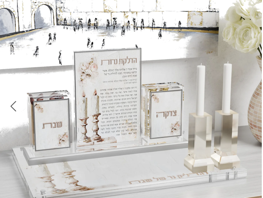 Discover handcrafted lucite Judaica that blends clarity, beauty, and tradition — from elegant challah boards to bencher sets and candle trays.