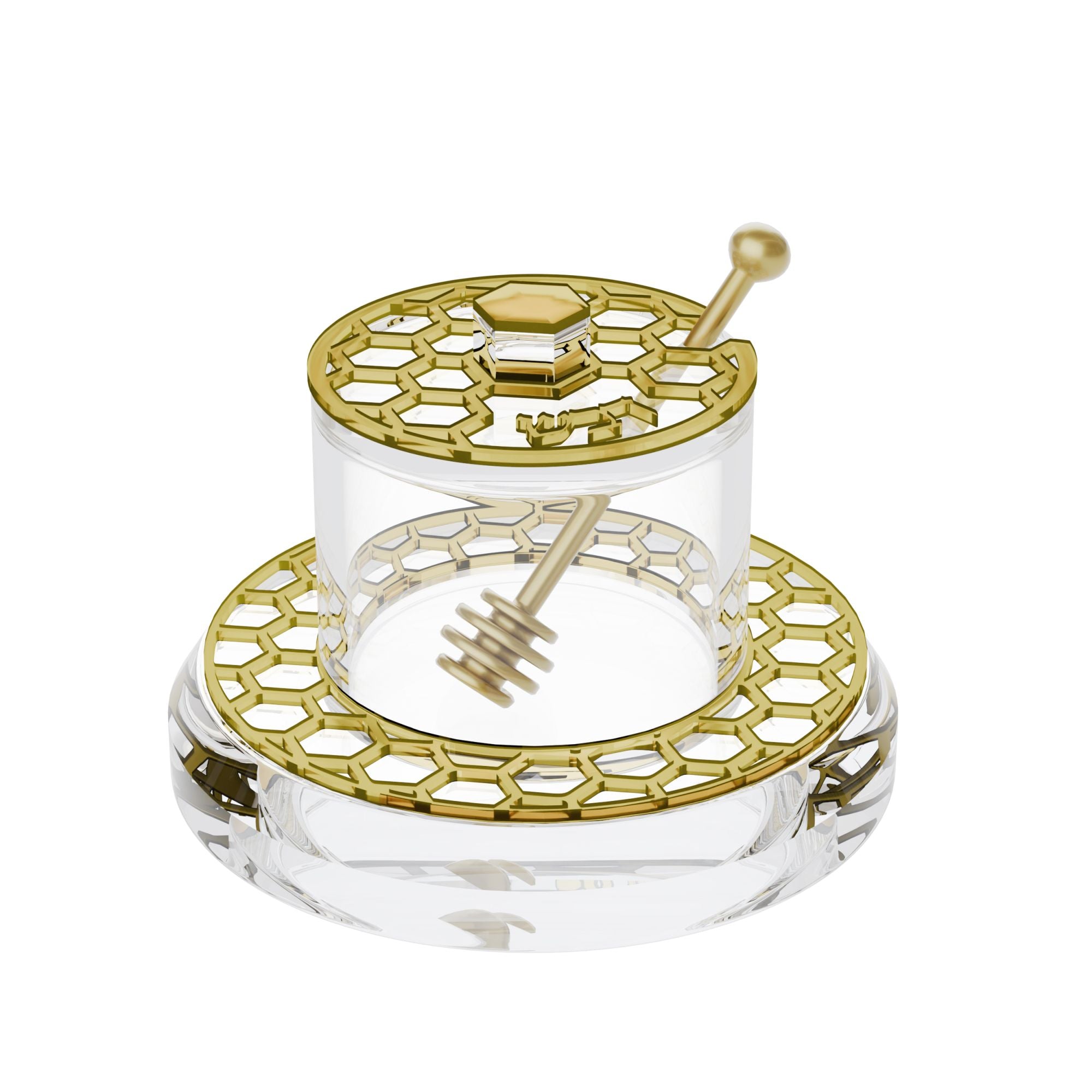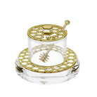 The Honeycomb Honey Dish v.2 made with clear lucite, showcases an exclusive raised 3D honeycomb design, combining modern elegance with functionality. Its drip-free base and magnetic lid provide a clean, secure experience, while the included spoon and dedicated cutout ensure effortless serving. Available in sophisticated gold or silver finishes, this dish is an exquisite addition to your Yom Tov table.