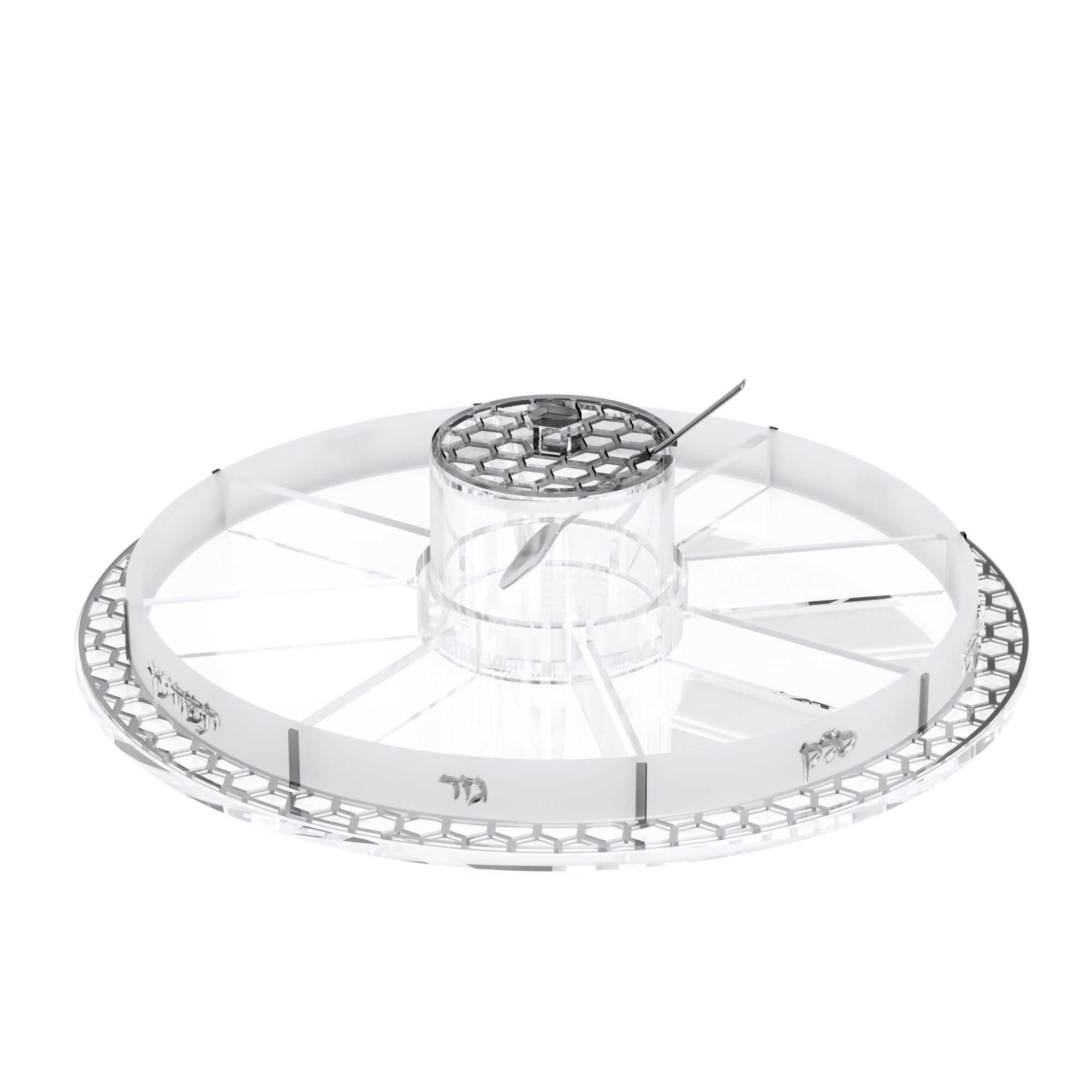 The Honeycomb Simanim Tray is a sophisticated centerpiece for your Rosh Hashanah table. Featuring eight compartments with 3D raised titles, a classic laser cut honeycomb design and available in gold or silver editions, this tray offers a clear and elegant presentation of each of the Simanim. Its swivel base allows effortless access to every section, while the removable honey dish with a matching spoon at the center offers an elegant enhancement. Designed to blend functionality with graceful style, this exquisite tray enhances your Yom Tov table with meaningful detail.