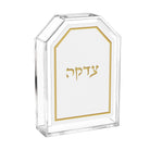 Enhance the beautiful Mitzvah of giving Tzadakah with this exquisite leatherite Tzadakah box. Elegantly crafted with leather intricately embroidered. Its sleek design, will add a touch of sophistication and splendor to any surrounding.
