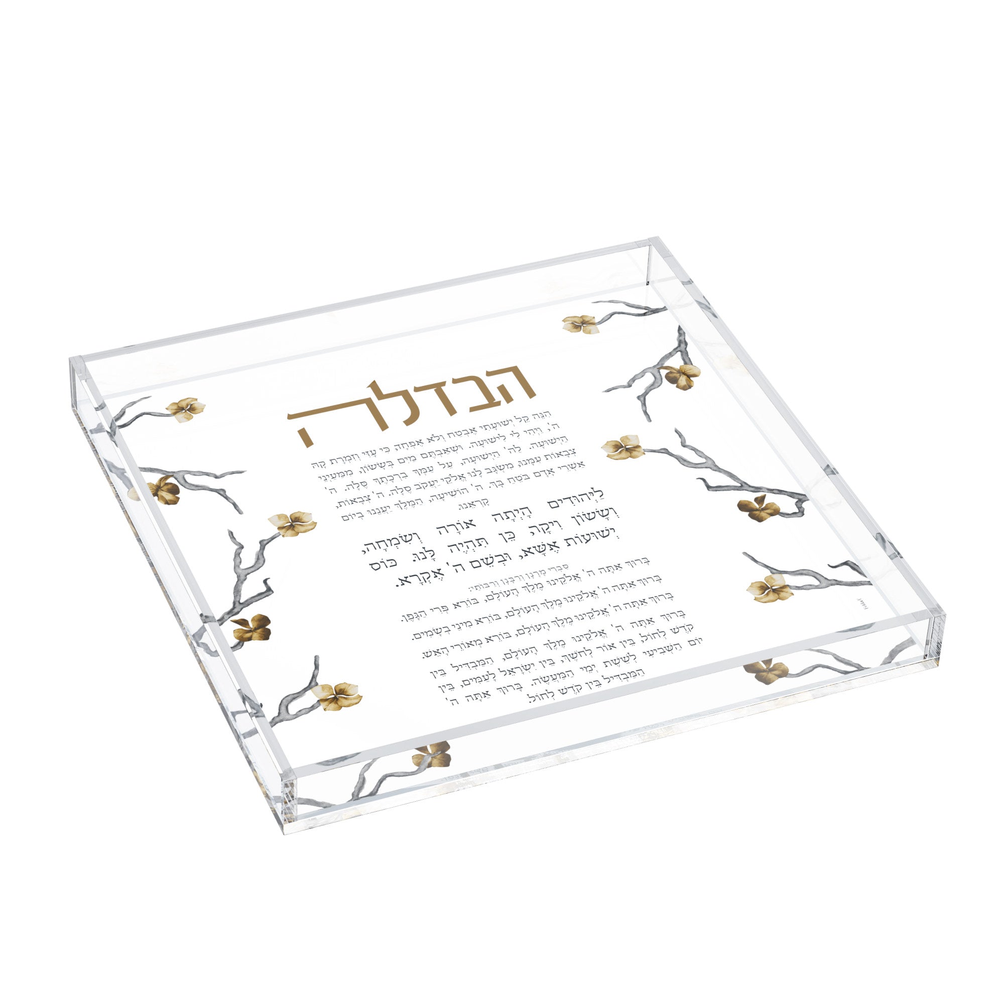 Elevate your Havdalah experience with the Golden Branch Havdalah Tray. Crafted with exquisite attention to detail, this tray features the Havdalah Brochos and a delicate golden branch design that exudes luxury and elegance. Give every Shabbos the grand finale it deserves!