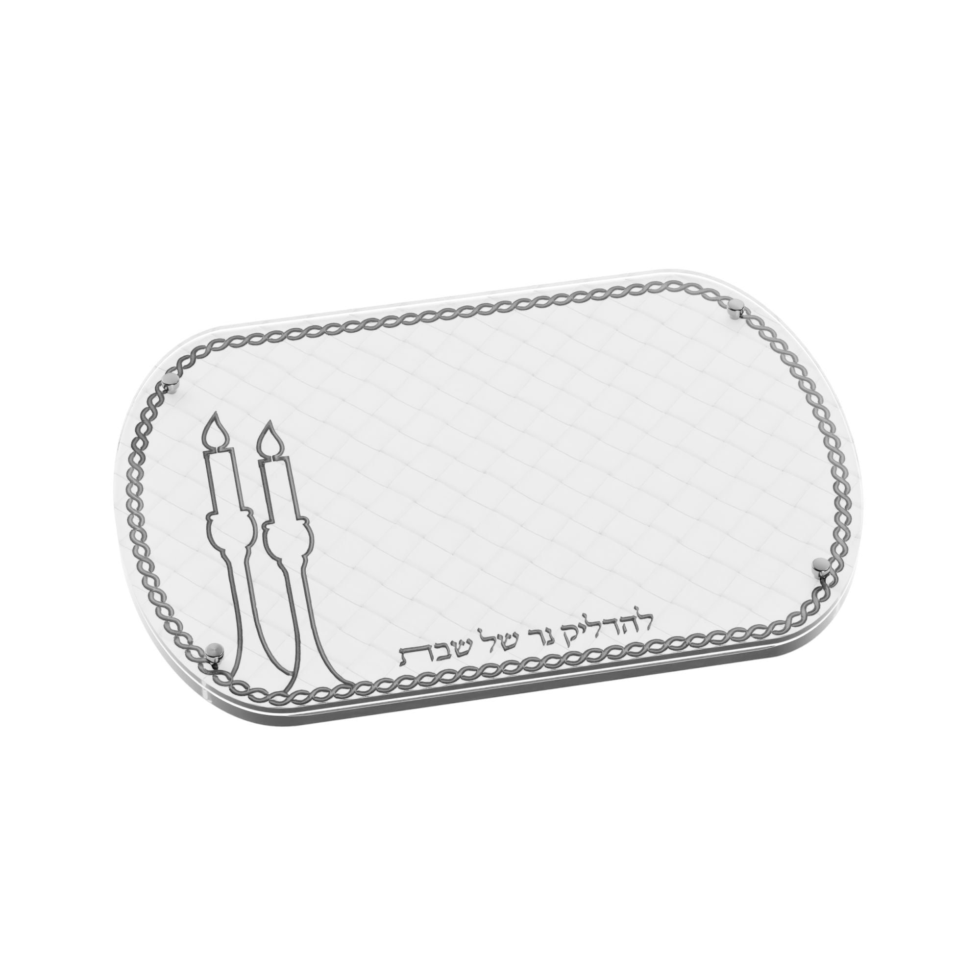Celebrate Shabbos with the Leatherite Woven Hadlakos Neiros Tray, an elegant accessory designed to enhance the mitzvah of Hadlakos Neiros. Available in gold or silver, this luxurious tray features beautifully embroidered textured leather encased in clear lucite with a tempered heat resistant glass top, combining tradition with modern sophistication. Its refined craftsmanship offers both beauty and durability, making it the perfect centerpiece for your Shabbos candle lighting