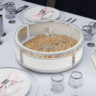 Indulge in the utmost sophistication with the Diamond Leatherite Round Matzah Box. Store your matzos in style and luxury, Lavishly constructed with lucite, adorned with leather and intricately embroidered borders, and adorned with a 3D raised title and a built in base. This matzah box is available in silver or gold to elevate any table decor. Keep your matzos fresh and your Pesach table elegant with this exquisite box.