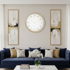 A stunning statement piece for any home, the Woven Leather Wall Clock features a luxurious woven leather face with Hebrew letter hour markers in place of numbers, set within an elegant double gold or silver lucite border with matching gold or silver hands. A beautifully unique timepiece that combines timeless craftsmanship with a distinctly Jewish touch. Available in gold or silver.