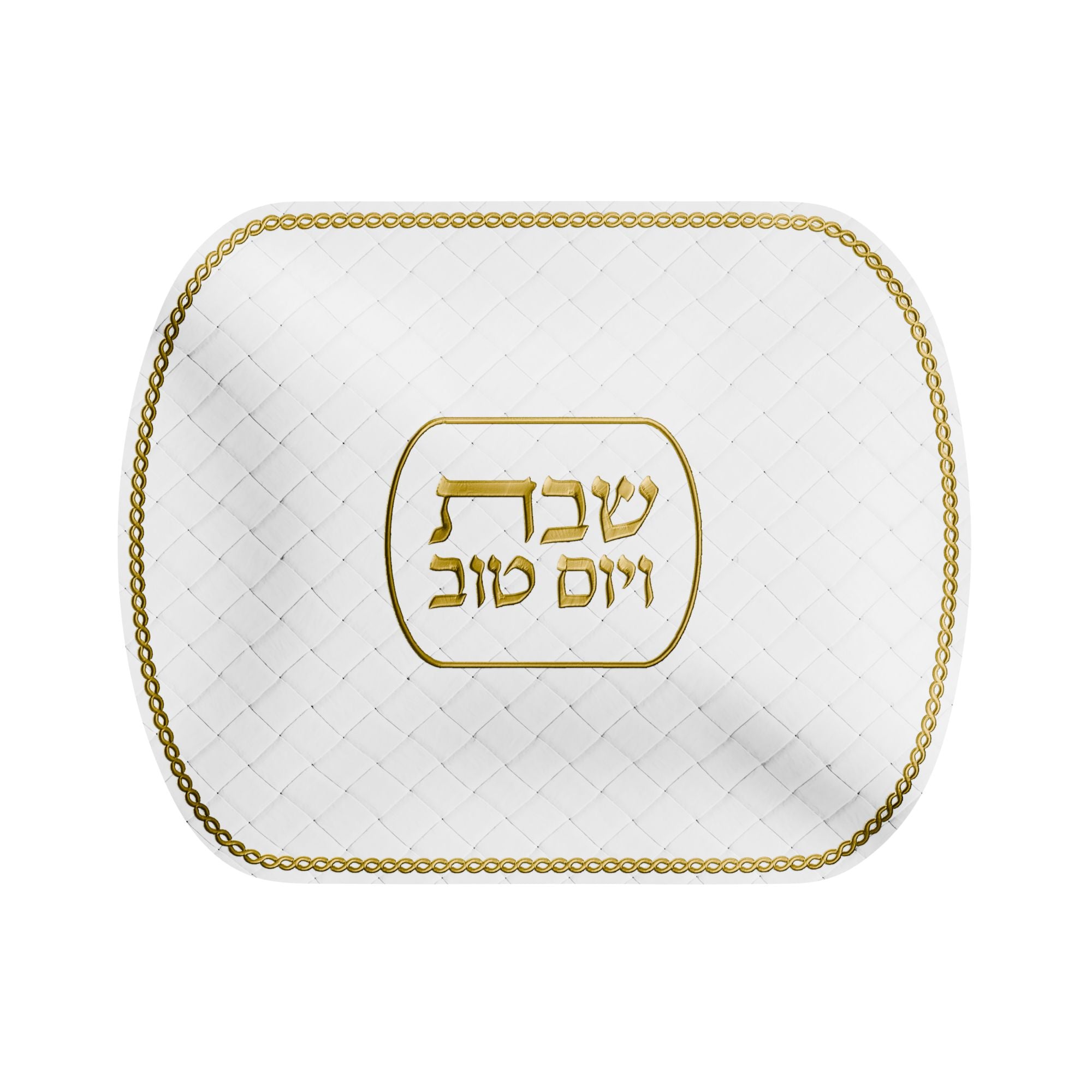 A stunning Woven leather Challah Cover embossed with a delicately emrbroidered title and border. A welcome addition to your Shabbos table. Available in Gold or Silver and uxuriously embroidered for that perfect finish, this is sure to make a welcome addition to your Shabbos or Yom Tov table.