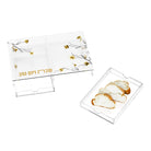 The Golden Branch Challah Board with Tray transforms your table with its stunning Golden Branch design and sleek glass top. Its innovative dual-tray system makes serving and sharing cut challah effortless, bringing both convenience and elegance to your gatherings. Elevate your Shabbos or Yom Tov table with this practical and eye-catching centerpiece.