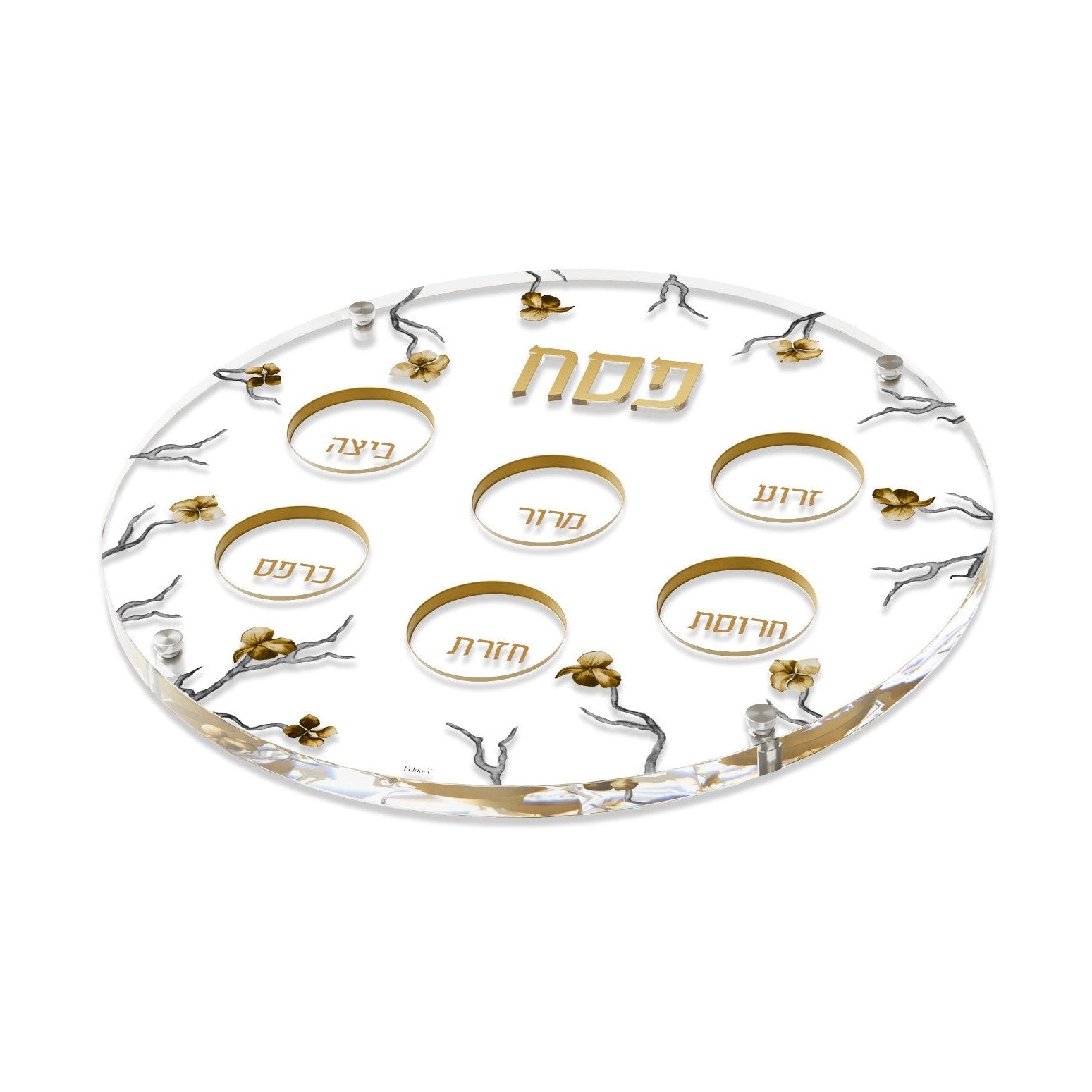 Elevate your Passover celebration with our luxurious Golden Branch Seder Plate. Part of our exclusive golden branch collection, this plate boasts a thick lucite base with a raised 3D title and chrome table standoffs, adding depth and sophistication to your Pesach table. Complete the symbolic journey of the Seder with this elegant centerpiece.