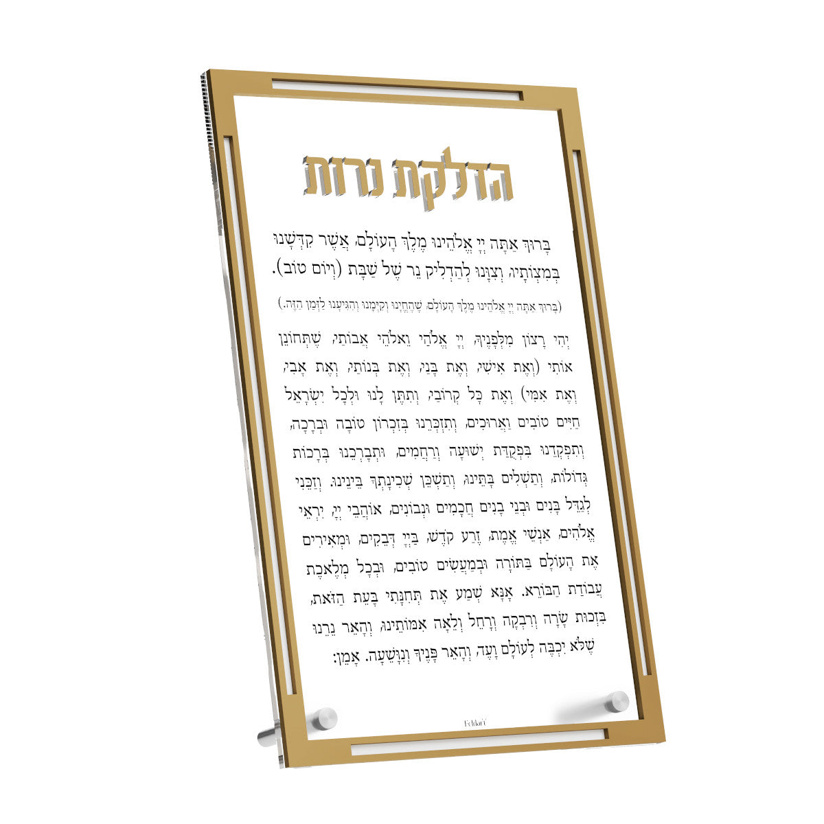 This beautiful Luxury Classic Hadlakos Neiros Tabletop Card with 3D raised title and border perfectly highlight the beauty of your Shabbos candles. A glamorous and sophisticated addition to any setting.