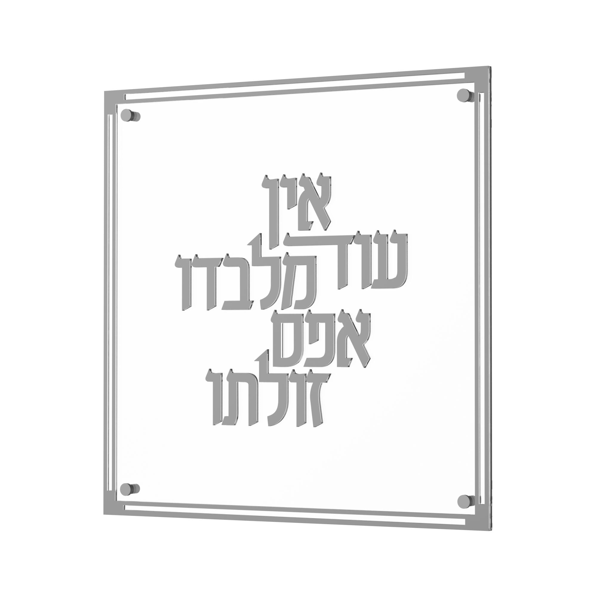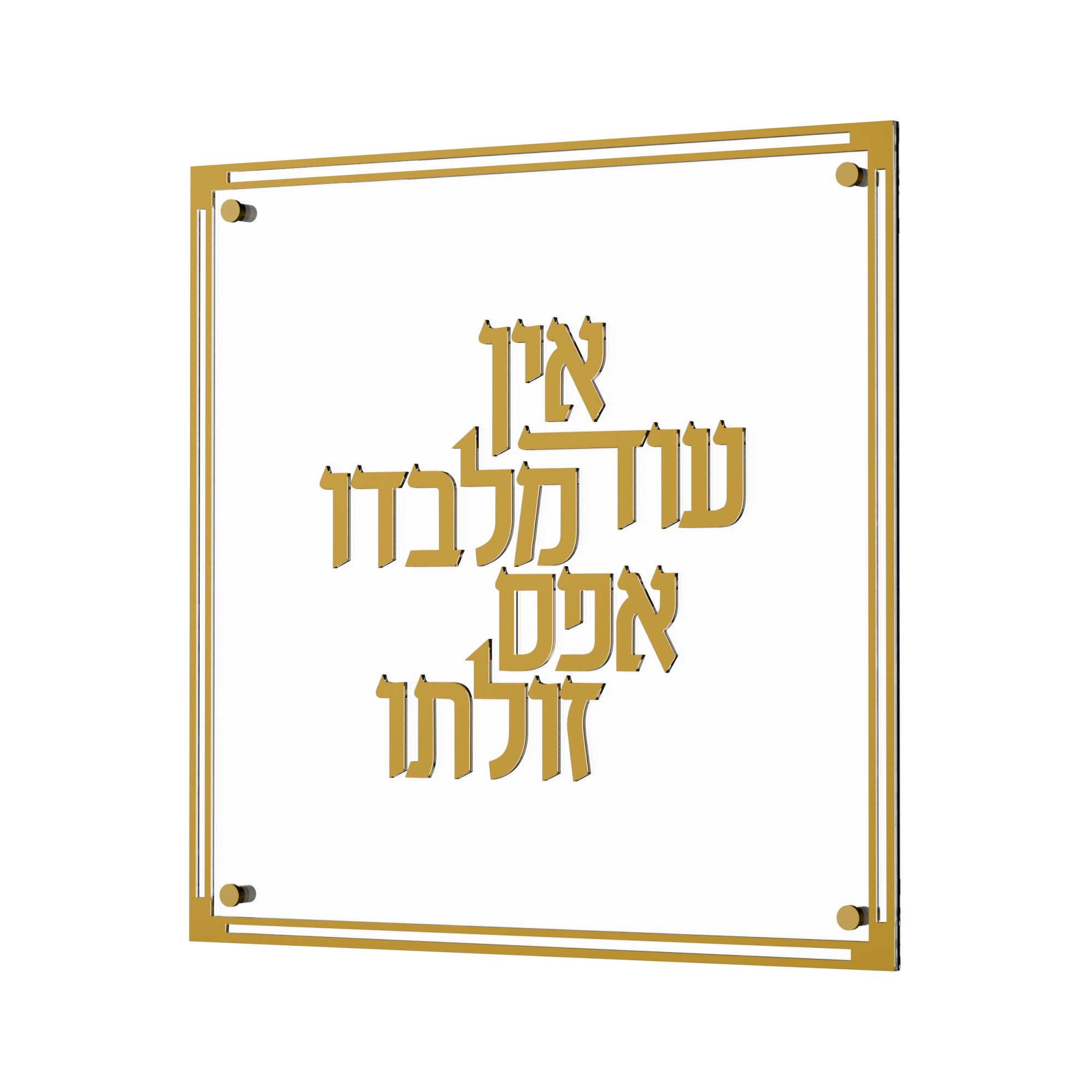 The Classic Ein Od Milvado features elegantly raised 3D borders and text on clear, high quality lucite, available in refined silver or gold finishes. This timeless piece serves as a sophisticated reminder of enduring faith and strength, making it a meaningful addition to any home or office.