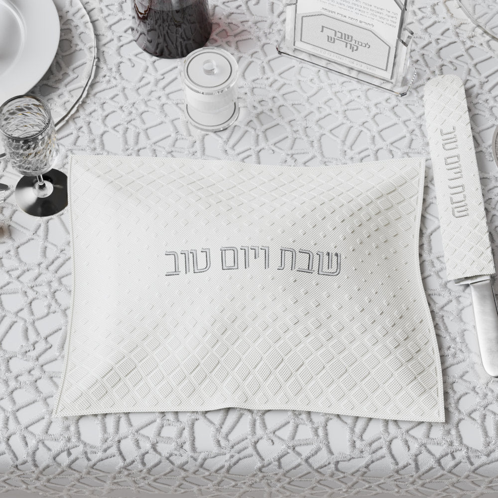 A stunning leather Challah Cover embossed with the diamond shapes. A welcome addition to your Shabbos table. Luxuriously embroidered for that perfect finish.
