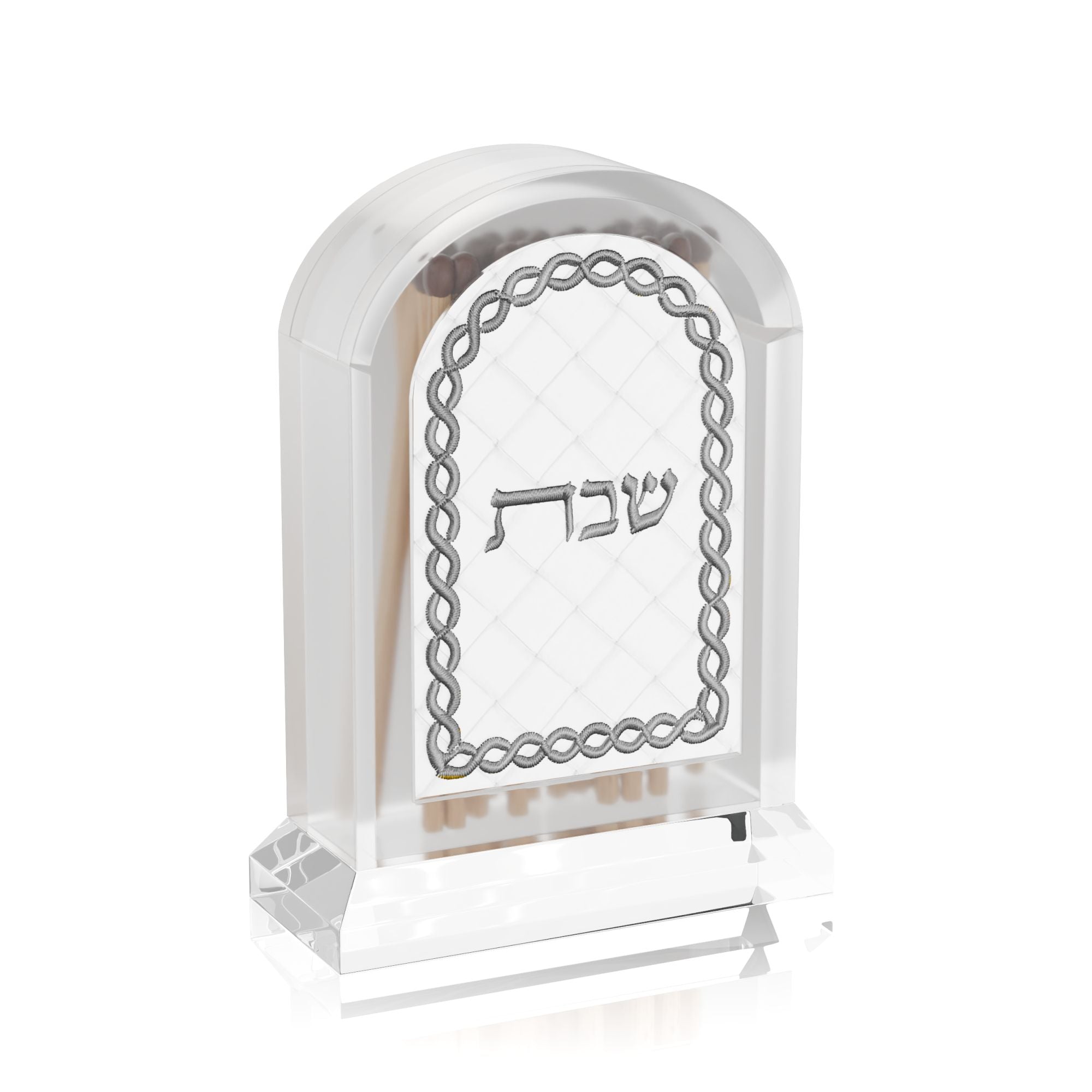 Transform your Hadlakas Neiros with this premium Woven Leatherite Match Holder - a statement piece that marries practicality with refined aesthetics. The magnetic lid keeps matches secure and accessible, while the embroidered leather front adds an artisanal touch that speaks to your discerning taste. Complete with an integrated striking pad, this elegant accessory becomes an essential part of your home's ambiance. Select from Gold or Silver to match your personal style. A perfect gift for yourself or a loved one.